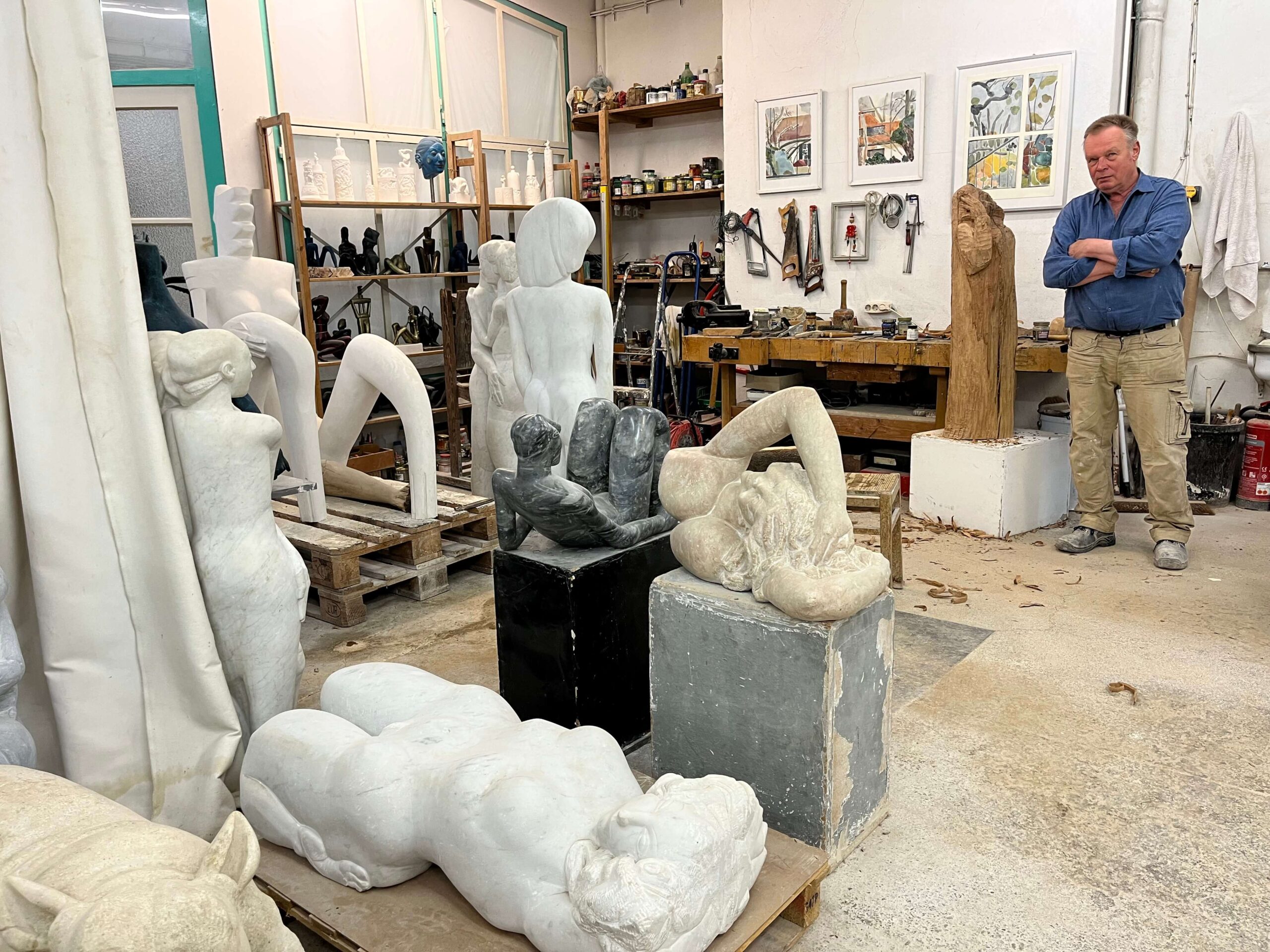 Ich bin seit 21 Jahren hier und brauche mein Atelier unbedingt, um meine Arbeit in Stein, Holz und Gips fortzusetzen. Die Skulpturen sind schwer und z.T sehr groß – ohne Atelier wüßte ich nicht wohin!